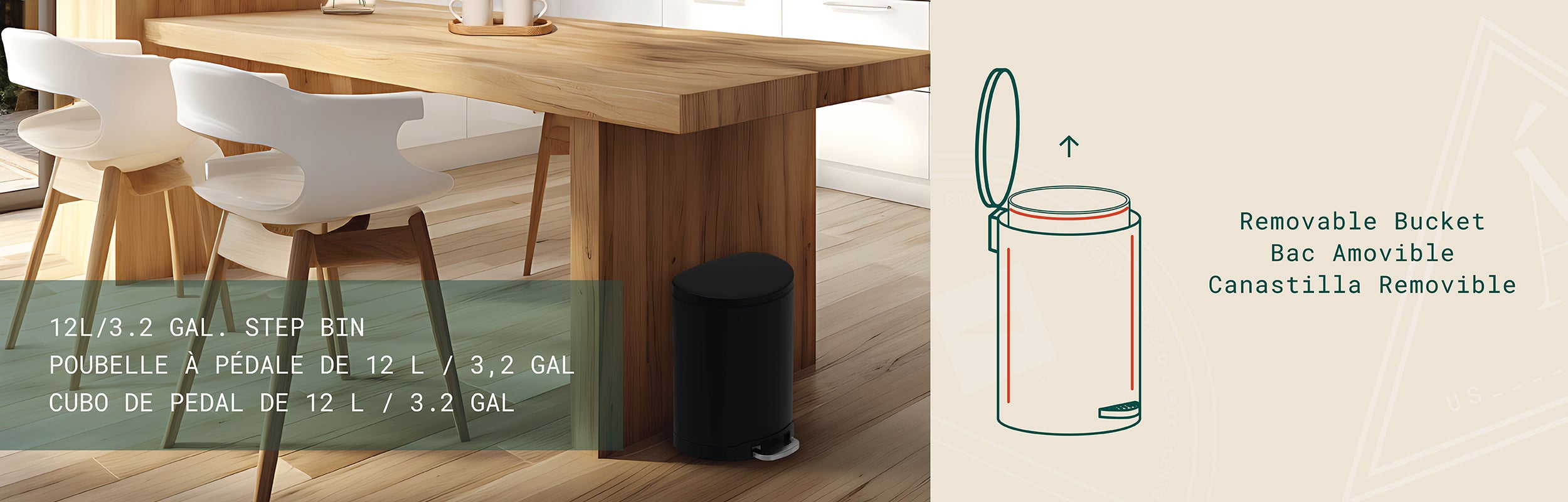 Available in 12 L (3.2 gal.) or 40 L (10.6 gal.) sizes: Choose the right capacity for your space, whether you need a compact bin for small rooms or a larger option for high-traffic areas.