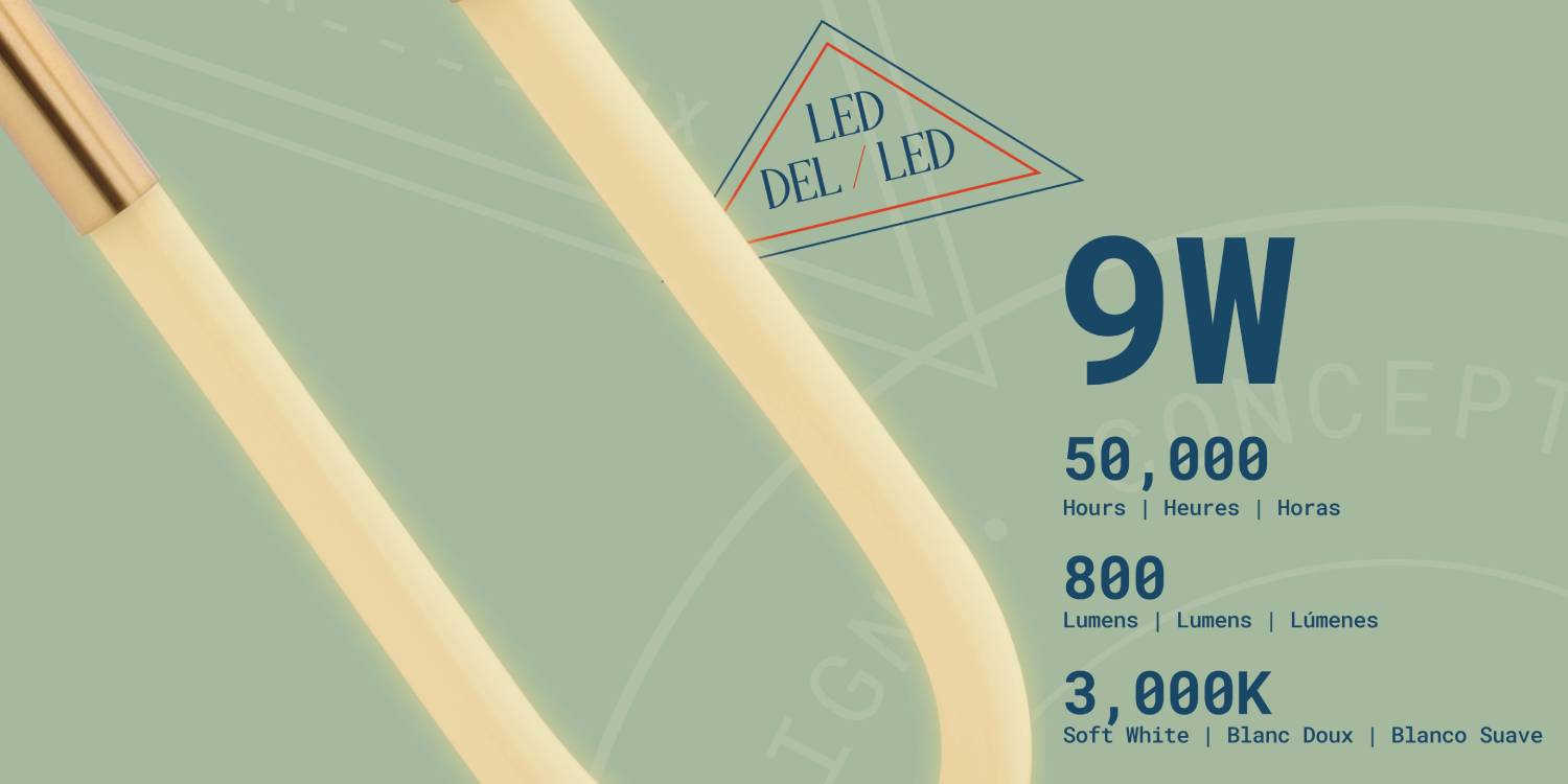 - Integrated LED – 9 W, 400 lm, 3000 K warm light for energy-efficient, long-lasting illumination.