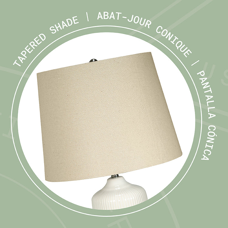Modern Design: Elegant ceramic table lamp featuring vertical ribbed texture on the base with a clean white finish for contemporary appeal