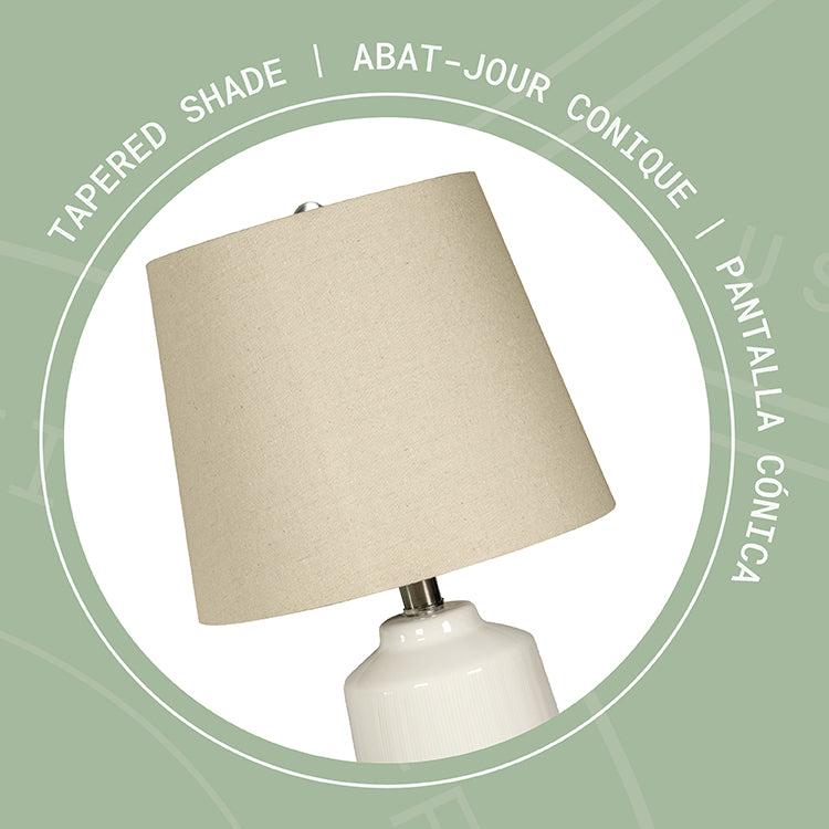 Modern Design: Elegant ceramic table lamp featuring a sleek white base and contemporary silhouette, perfect for any room décor