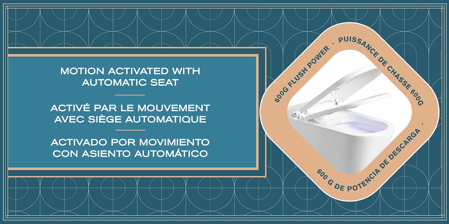 Hands-Free Operation: Motion-activated seat and automatic flush system for convenience.