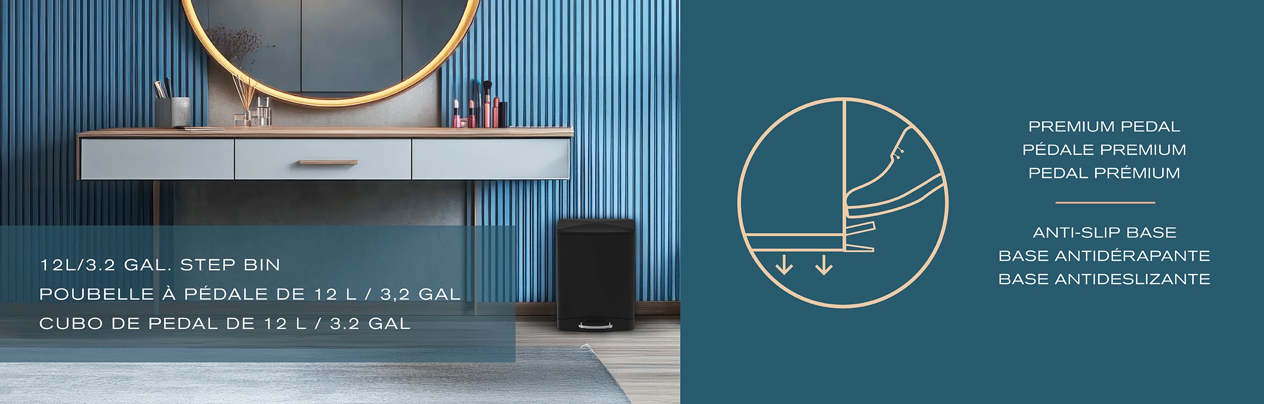 Soft-Close Lid & Wide Opening: Quiet lid closure with a generously sized opening for easy disposal of larger items.