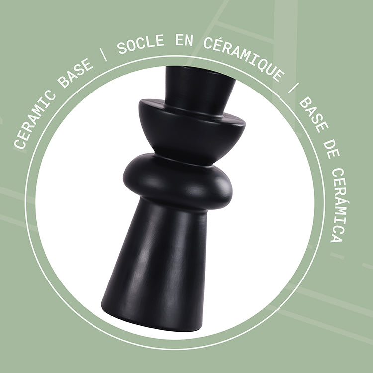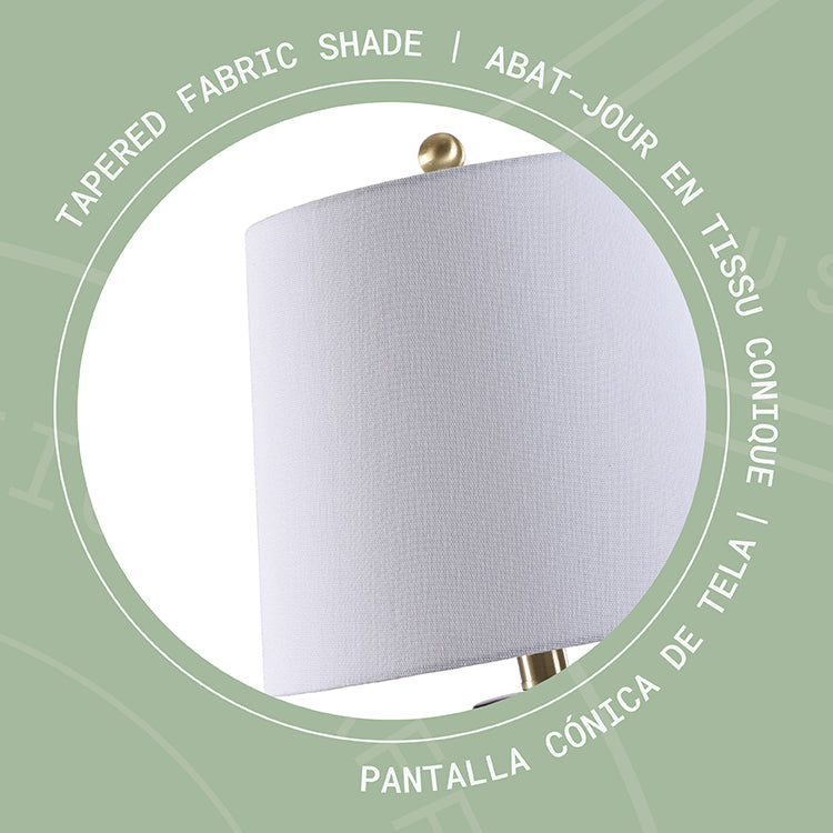 Contemporary Accent: A sculptural turned ceramic base paired with an off-white tapered fabric shade brings a fresh, modern look to any room.