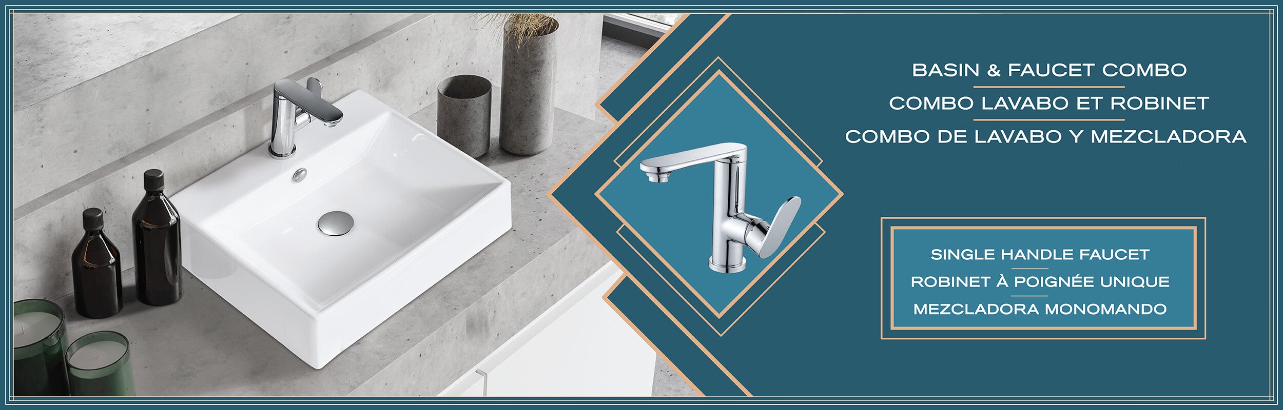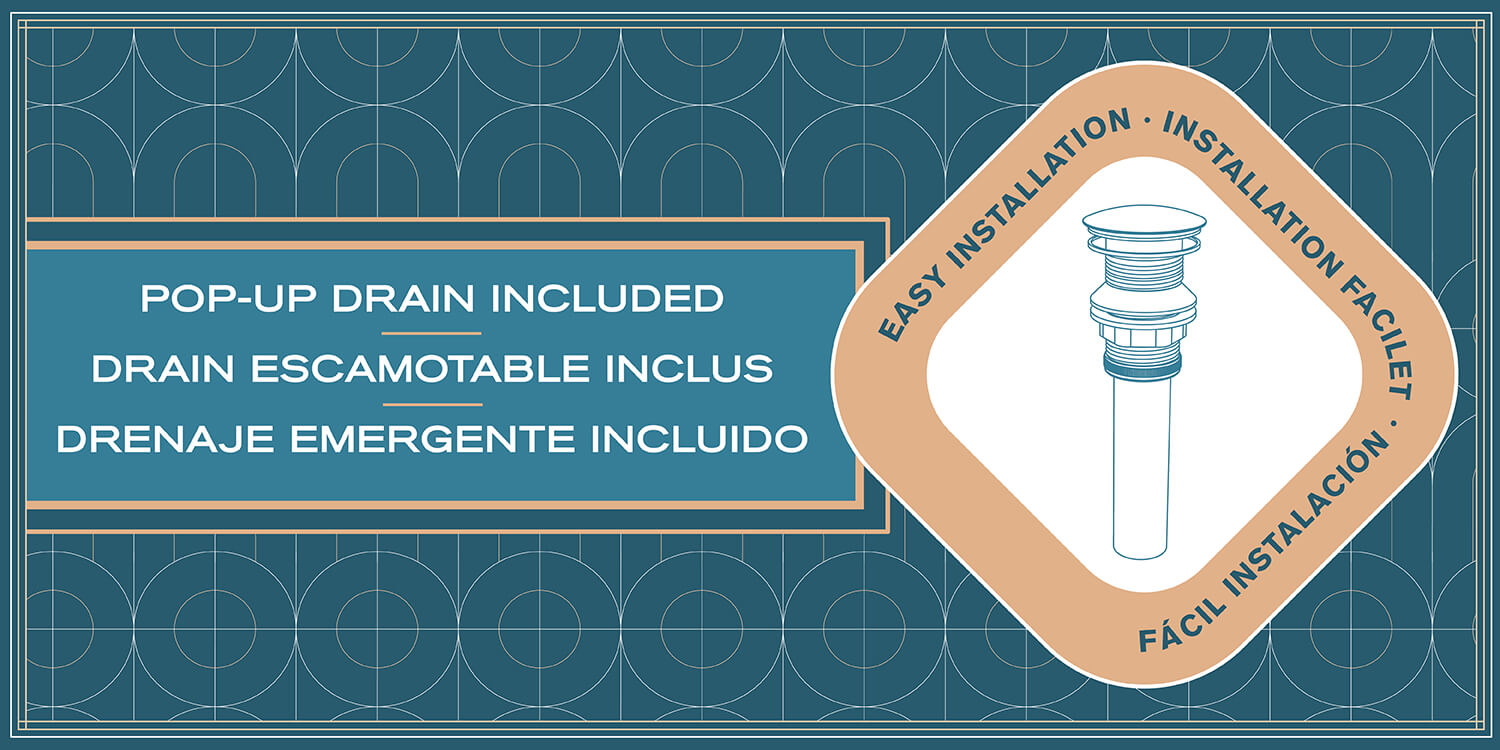 - Complete Set: Basin with single-handle faucet and matching pop-up drain included.
