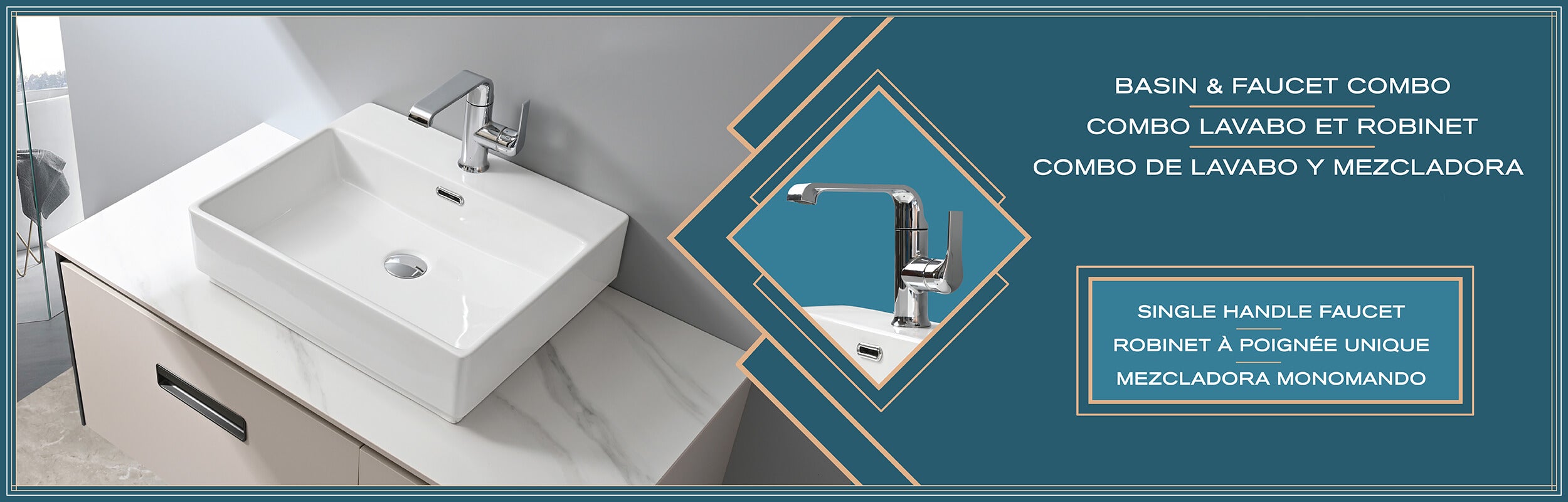 - Complete Set: Basin with single-handle faucet and matching pop-up drain included.